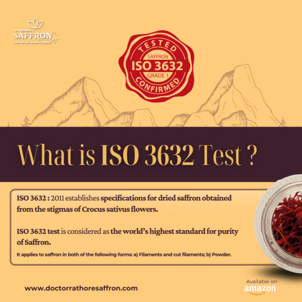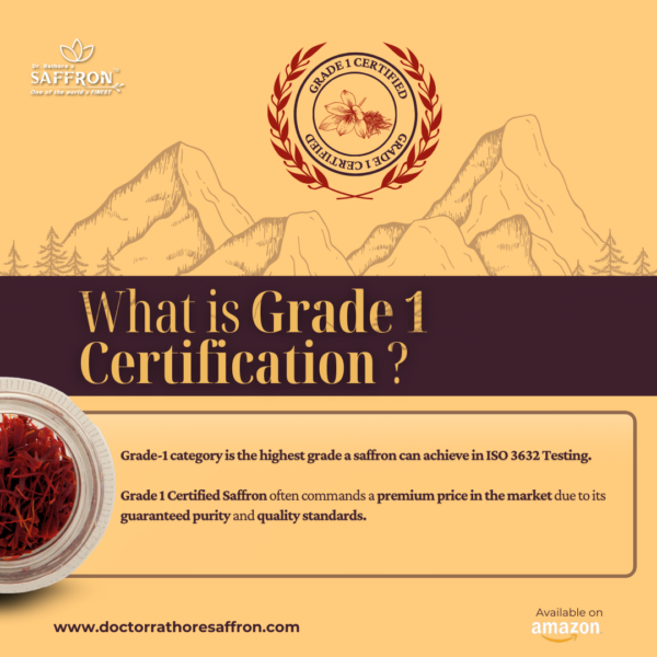 Dr. Rathore’s Saffron is a Grade-1 Certified Saffron test by international standard parameters “ISO.3632” which is the most trusted and recognized test globally, when it comes to assess saffron quality and purity. Sourced Directly from the pristine valleys of Kashmir. Known for its unmatched purity, vibrant aroma, and rich flavors. Daily consumption in small quantity will gives tremendous health benefits. Our unadulterated kesar is perfect perfect for spiritual (Pooja) uses. Enhance your lifestyle with this premium exported-quality saffron that offers a legacy of wellness and luxury.