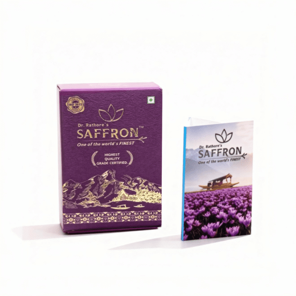 Dr Rathore’s Saffron hails from the pristine valleys of Kashmir, renowned for its unmatched purity and quality. This Grade-1 Certified saffron tested in NABL Recognized Govt. Laboratory, the highest achievable grade in the world, undergoes rigorous testing by ISO 3632, the world’s most trusted and recognised standard. Packaged with meticulous hygiene in a state-of-the-art facility, Dr Rathore’s Saffron ensures the utmost quality and safety. Each vibrant thread embodies nature’s perfection, captivating with its rich aroma, vivid colour, and exceptional flavour. Saffron has been cherished for centuries as a symbol of luxury and wellness. Historically used by royalty, it continues to enhance culinary masterpieces, add sanctity to rituals, and provide a natural boost to health. This premium saffron is rich in antioxidants and bioactive compounds, promoting enhanced focus, improved memory, and an uplifted mood.